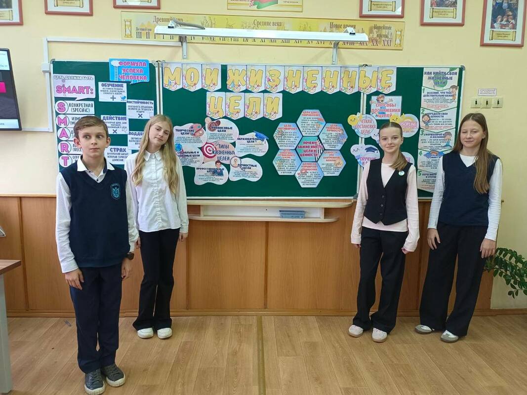 Занятие началось с беседы о том, что такое жизненные цели и почему они так важны. Ребята обсуждали свои мечты, учились превращать их в конкретные планы и шаги. Классный руководитель рассказал о том, как целеустремлённость, трудолюбие и поддержка близких помогают реализовать задуманное.