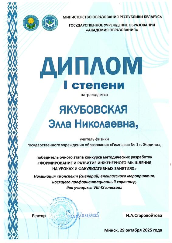 ПОЗДРАВЛЯЕМ победителя очного этапа конкурса методических разработок «Формирование и развитие инженерного мышления на уроках и факультативных занятиях»