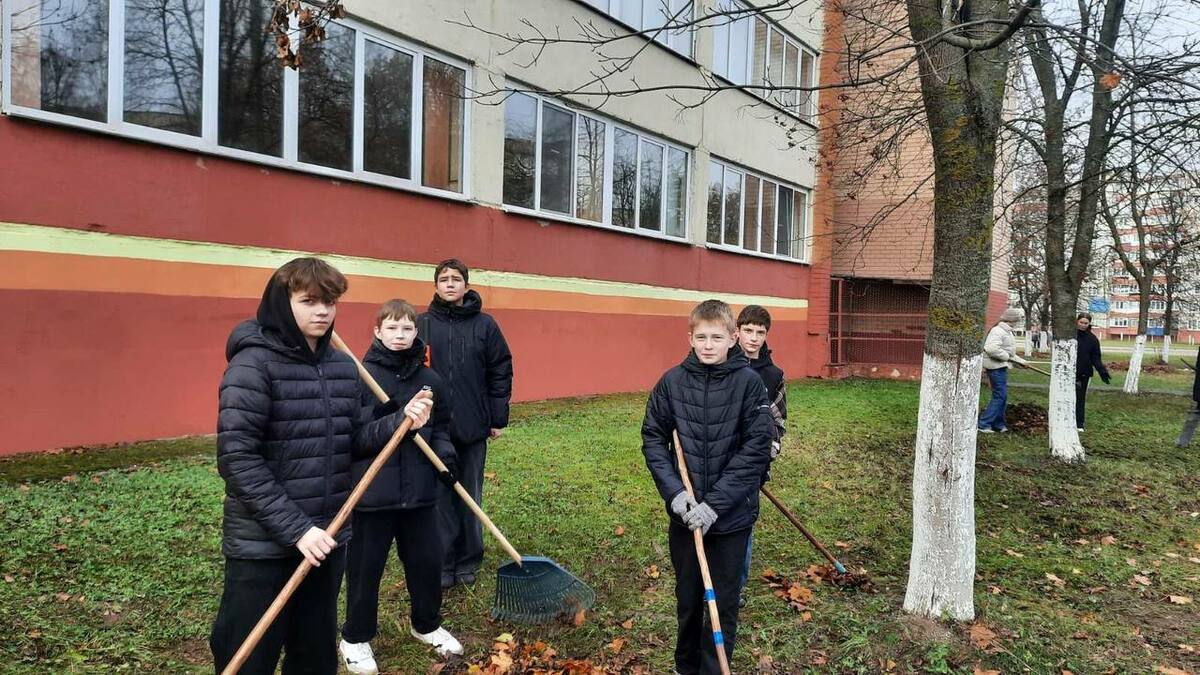 В период осенних каникул учащиеся 10-х классов нашей гимназии приняли активное участие в трудовой акции «Сделаем территорию гимназии чище», проходившей в рамках Года благоустройства. Цель мероприятия — улучшение санитарного состояния школьного двора, формирование у старшеклассников трудовых навыков, экологической культуры и бережного отношения к окружающей среде.