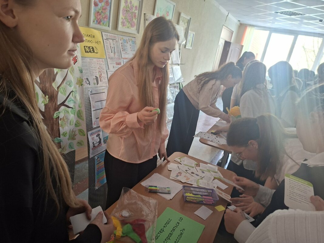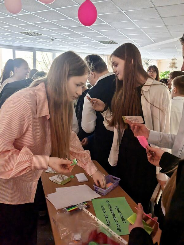 Акция «Дерево эмоций. Настоящий всплеск активности! В холле появилось необычное дерево, которое вместо листьев «распустило» эмоции. Так мы смогли увидеть, какая погода царит в нашем коллективе. На мастер-классе «Как справляться со стрессом?» ребята и учителя узнали, как успокоиться перед контрольной, что делать, если эмоции зашкаливают, узнали о простых, но эффективных техниках дыхания и саморегуляции. Для учеников 5-8 классов работала зона «Раскраски-антистресс». Сложные узоры и яркие карандаши помогли отвлечься от гаджетов и успокоить мысли. А на арт-терапии «Рисуем музыку» не было правил. Ребята закрывали глаза, слушали мелодии и переносили свои чувства на бумагу. Получилось очень глубоко и красиво!